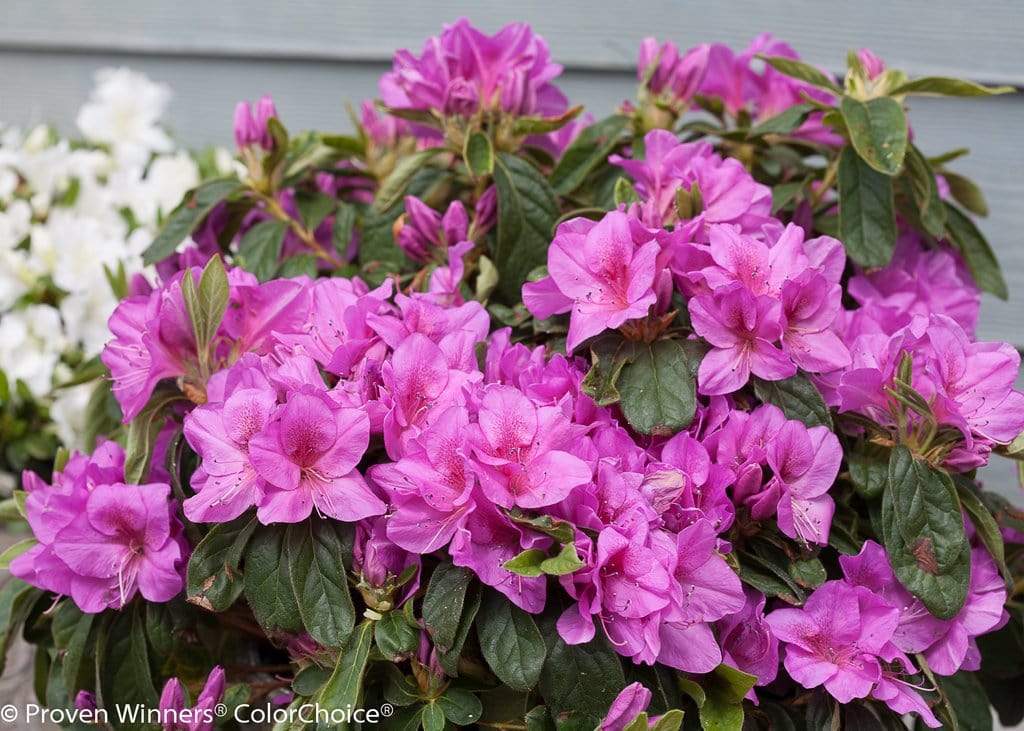 Even high summer temperatures don't stop this beauty from producing loads of blooms, providing up to five months of color to your garden! Deep lavender flowers appear in April, then again in early July, continuing through fall until the first hard frost. The evergreen foliage is disease resistant and maintains excellent color year-round.