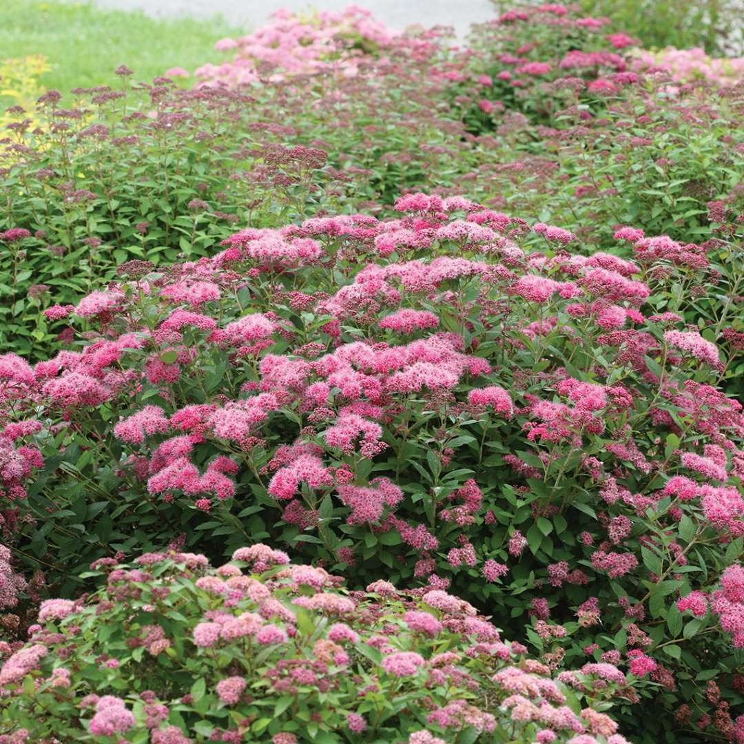 Deer-resistant Double Play Pink Spirea Shrubs are an improved variety of spirea with foliage that emerges dark red in spring and then turns a rich green in time for the pure pink spring flowers. The flower color on this variety is quite intense - much deeper than that of other varieties. It has a dense, mounded habit that is perfect for landscapes.
