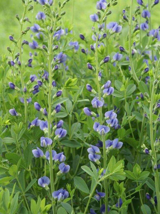 The False Indigo (Baptisia Australis) has lupine shaped flowers standout in any garden and are commonly used as a showstopper in cut flower arrangements. Probably the most familiar and wide-ranging of Baptisias, Blue Wild Indigo can provide an early deep blue flare in spring in native plantings where its bushy structure complements summer bloomers.