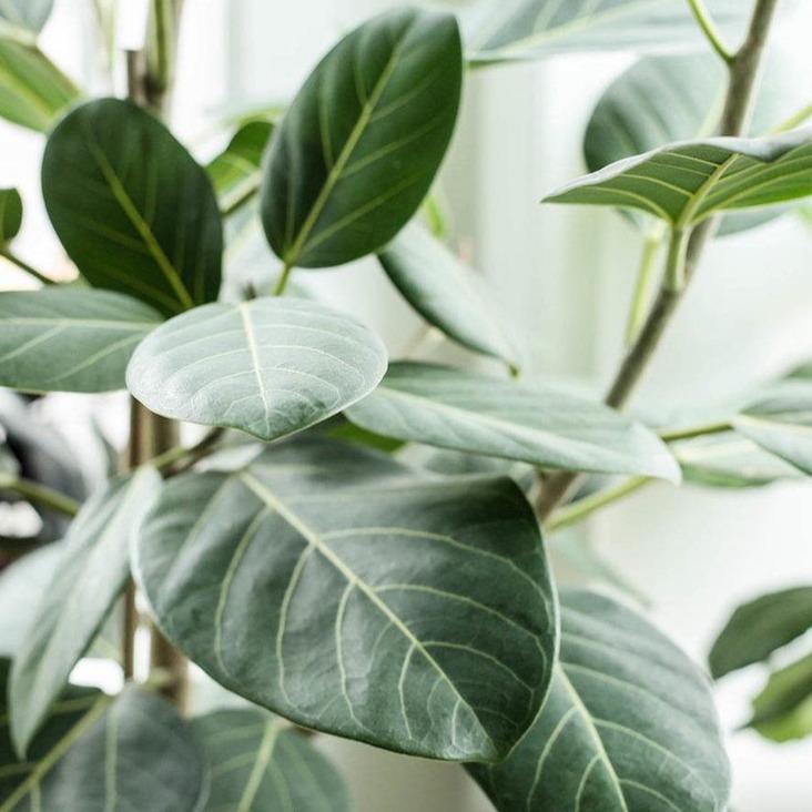 The Audrey Ficus Plant (Ficus benghalensis) is a houseplant quickly growing in popularity. Its large leaves are similar to that of a rubber plant, with pale green veins that contrast beautifully against the emerald green tone of the leaf.