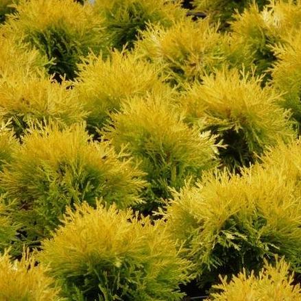 Harvest Moon Arborvitae has dense, golden yellow foliage that covers this rustic dome-shaped shrub. It is a hardy evergreen conifer that thrives in regions with high humidity. It can be used as a low hedge and to add color to the foundations of your landscape design. When you combine it with other bright green evergreen shrubs, its golden yellow color stands out in the garden.