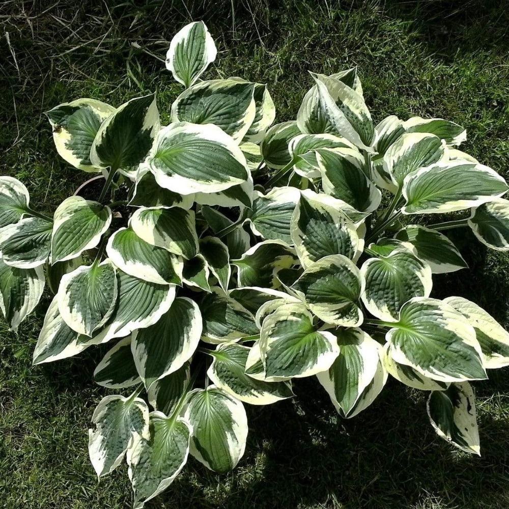 Hosta Patriot boasts strong white margins on dark green heart-shaped leaves. Looks good all season. Prefers bright shade and humus-rich, moist, well-drained soil, but will tolerate average to dry soils and full shade. Green leaves edged in white and contrast to the shade garden!
