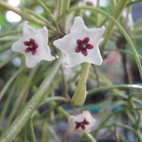 Hoya Retusa (Hoya retusa) is a Hoya plant that produces spindly, waxy leaves and is ideal as a hanging plant. As your Hoya retusa succulent matures, it will bloom white and pink star shaped flowers. From India, this grass-like semi-succulent Hoya will cascade down the edges of a planter or shelf and can grow well past 4 feet long. They love bright light but don’t leave them in direct sun for more than a few hours.
