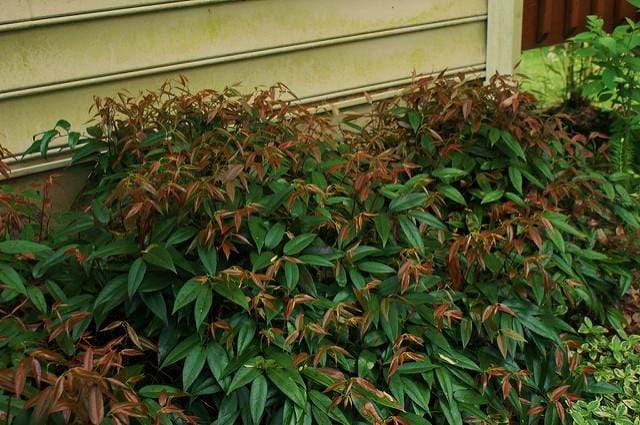 Leucothoe Scarletta produces scarlet-purple new growth that turns to a neat mound of shiny deep green foliage in spring. Leucothoe Scarletta becomes reddish-bronze in fall. A beautiful native shrub.