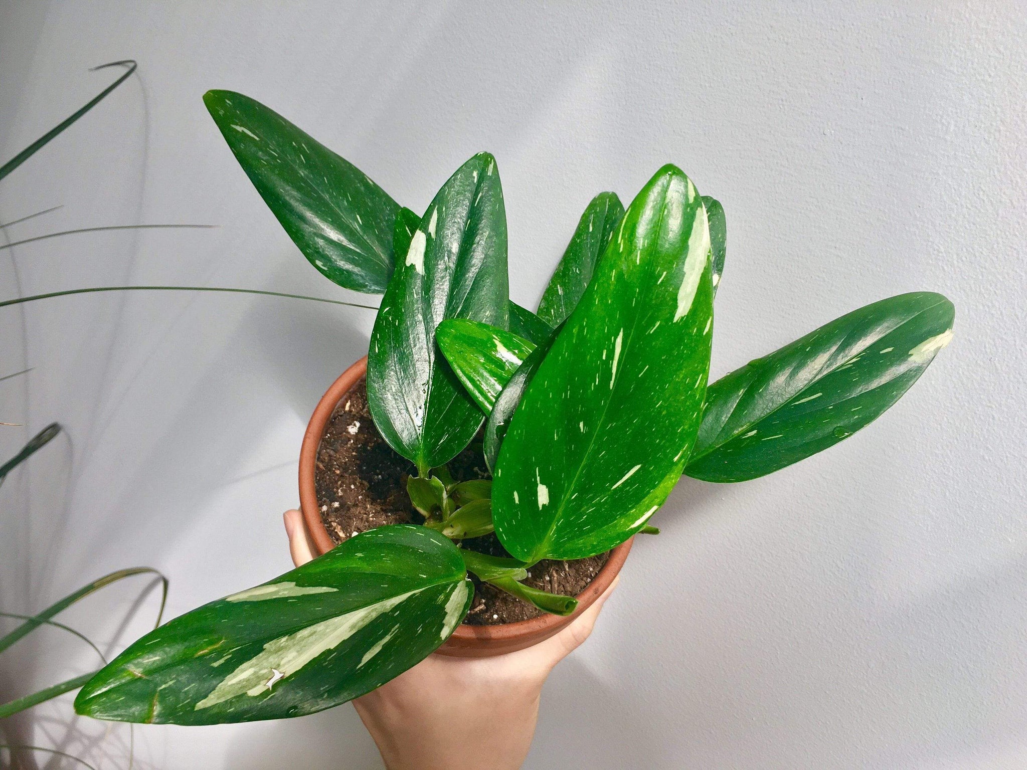 The Philodendron Cobra is one of the more sought after philodendrons with its variegated foliage of cream white and green.  A rare and unusual philodendron, that can tolerate Lower Light Levels, and in time will grow to an impressive height if accompanied with a moss pole.