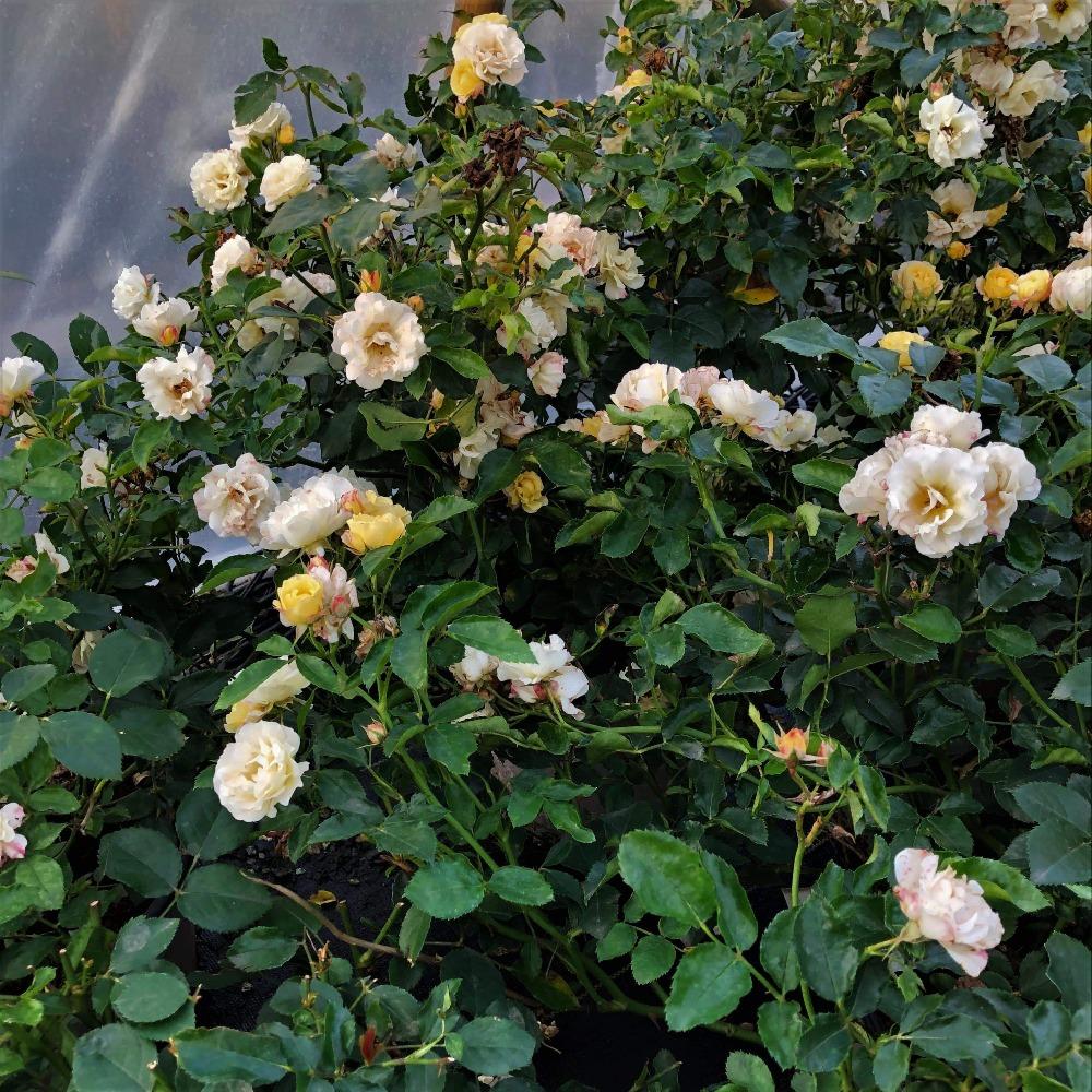 Popcorn Drift Rose continuously flowers from late spring through early fall. Popcorn Drift Rose represents a new color in the Drift® series. The color starts out yellow and fades to cream white, sometimes suffused with light pink. The overall impression is yellow and cream; reminiscent of buttery popcorn.