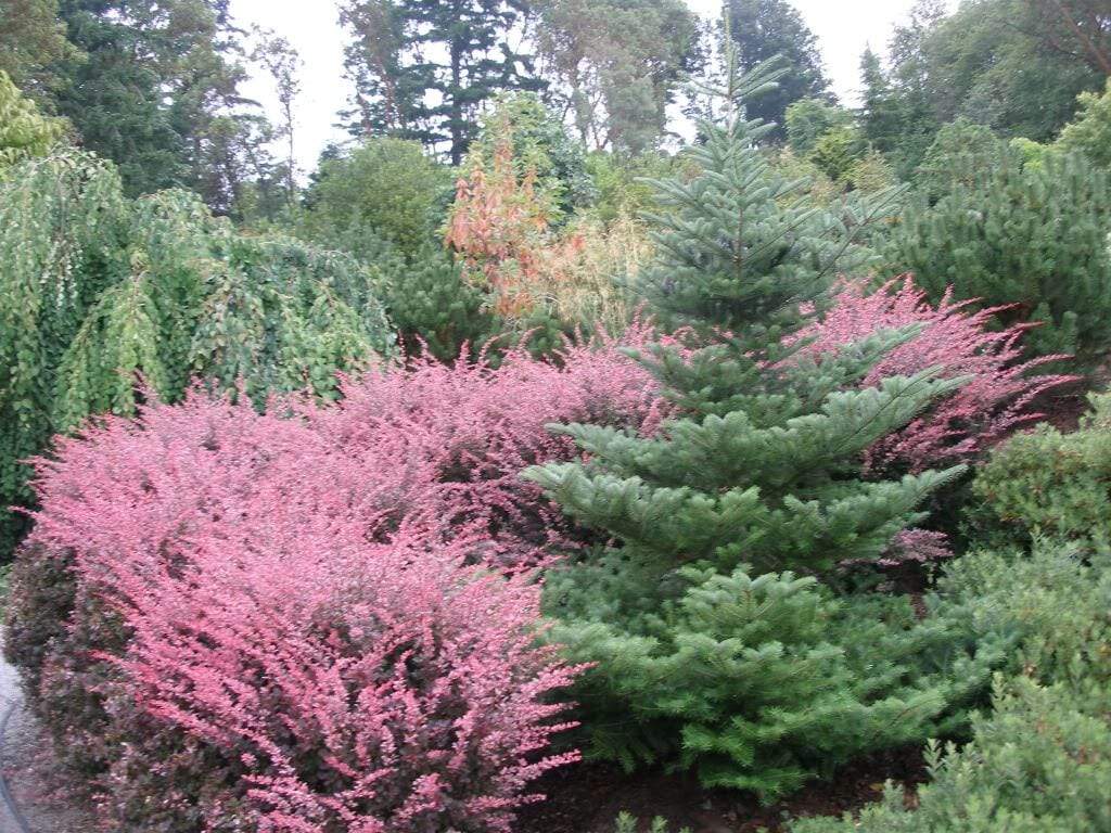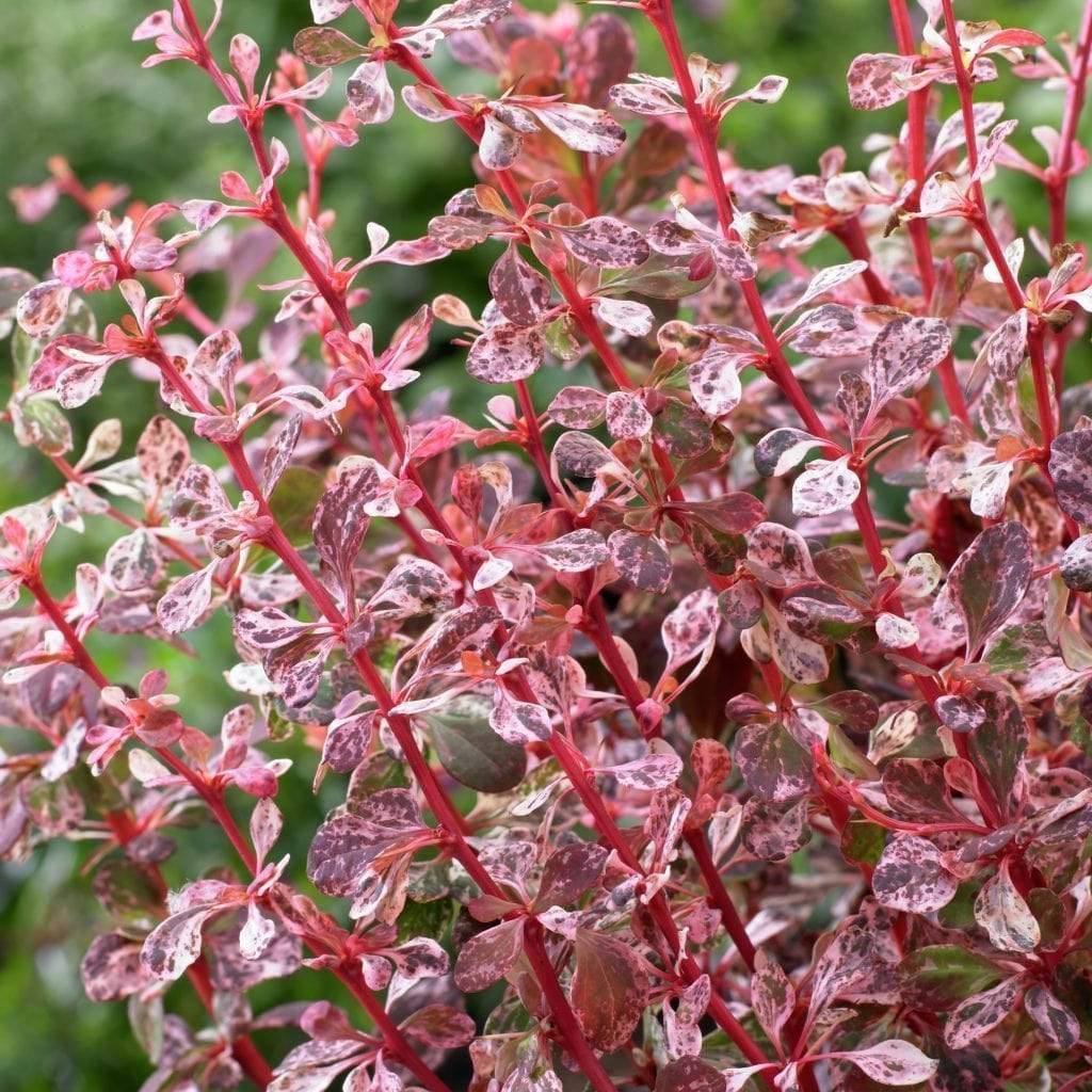 Rose Glow Barberry has graceful branching and makes a wonderful hedge, barrier planting or single accent. Deep rose-red foliage is mottled with white and green in spring, which brings wonderful, warm color into the landscape. Rose Glow Barberry has bright red berries in fall and winter.