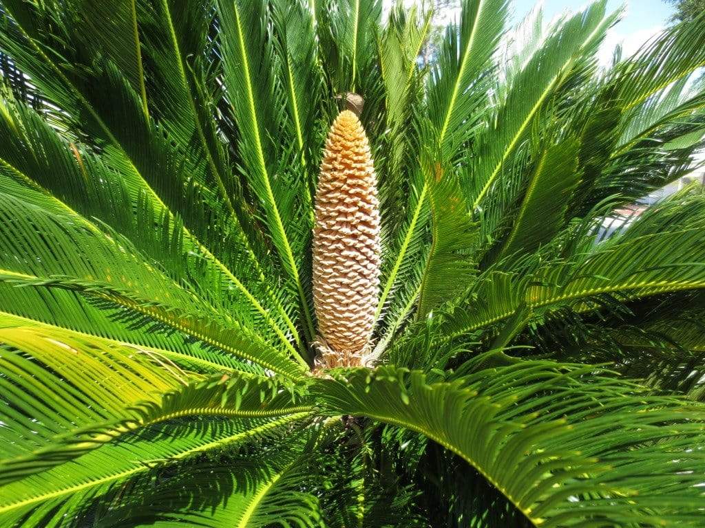 Sago Palm Plants, although not a true palm, offers a look into what life looked like on prehistoric Earth. These glossy, dark green cycads have been growing and thriving since dinosaurs roamed the Earth. As you can imagine, the plants are incredibly hardy houseplants, or can even be planted outdoors in full sun where hardy. The feathery foliage on Sago Palm Plant makes an excellent background plant for a corner indoors or an accent plant on an end table in the living room or dining room.