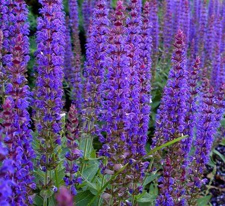 Magnificent deep purple spikes of flowers that attract butterflies and bees! The most intense deep indigo-purple spikes imaginable rise to 18" above the rough green leaves during June and July.