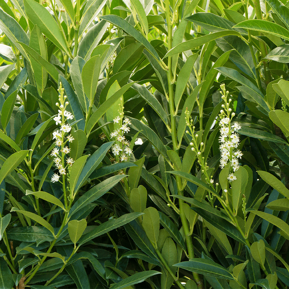 Skip Cherry Laurel is one of the fastest-growing evergreen hedging shrub that is not a conifer. Its also very salt and drought tolerant make a great privacy shrub for any condition. Enjoy the beautiful fragrant, sweet smelling flowers in the spring too!