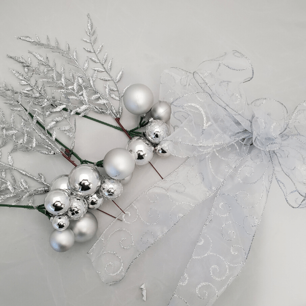 It's that time of year again where we start to think about decking the halls. This silver decorator kit is perfect for use with wreaths, door swags, and window swags. The kit includes includes: